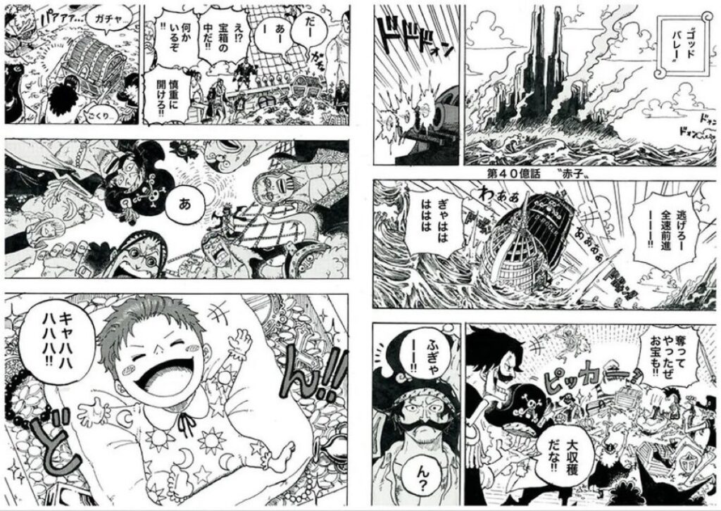 ゴッドバレーに用意された宝箱はどれも価値あるものばかり。ロジャー海賊団も複数の宝箱を奪ったがその1つにシャンクスが入っていた。